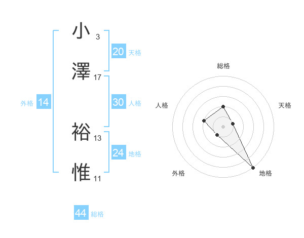 小澤 裕惟さんの総格は44画の2点!