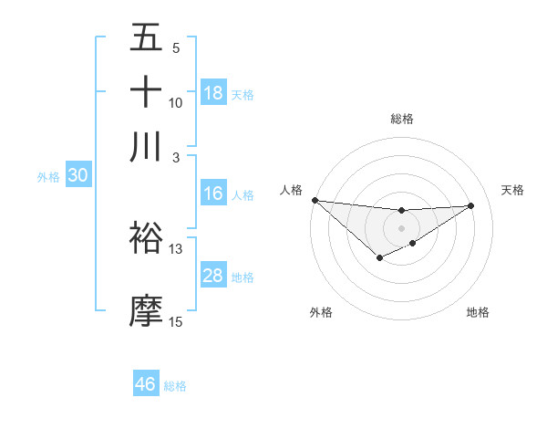 五十川 裕摩さんを姓名の画数から五運を鑑定