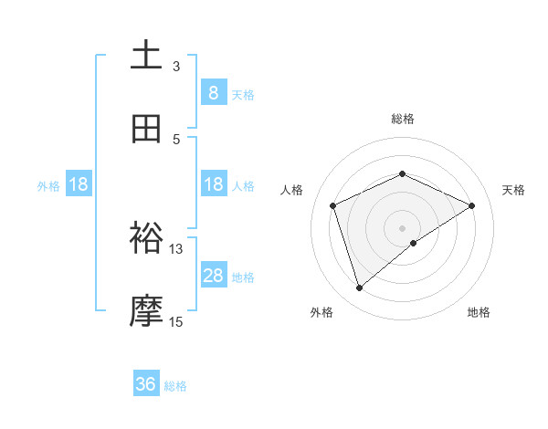 土田 裕摩さんを姓名の画数から五運を鑑定