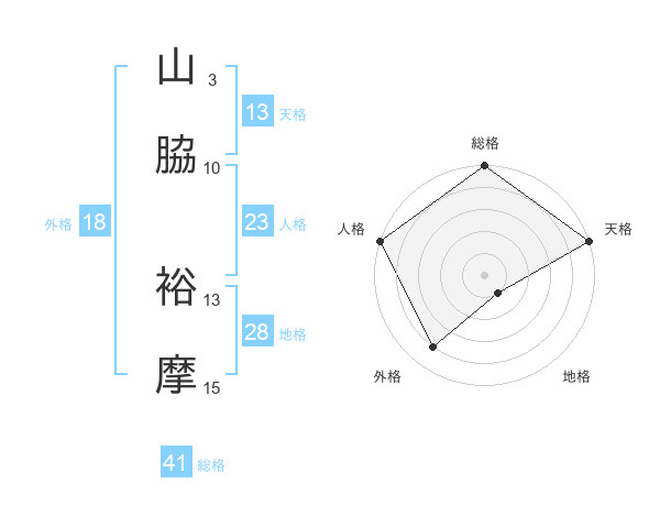 山脇 裕摩さんを姓名の画数から五運を鑑定