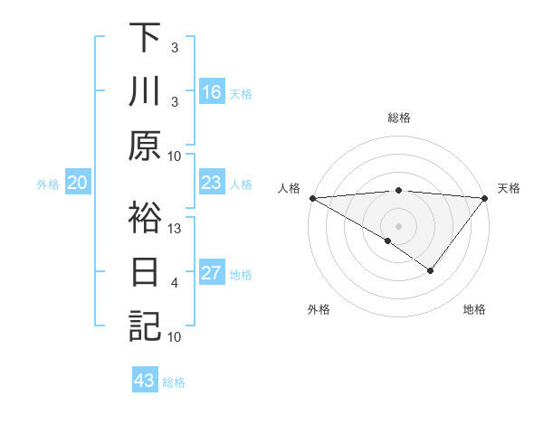 下川原 裕日記さんの総格は43画の2点!
