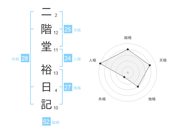 二階堂 裕日記さんを姓名の画数から五運を鑑定