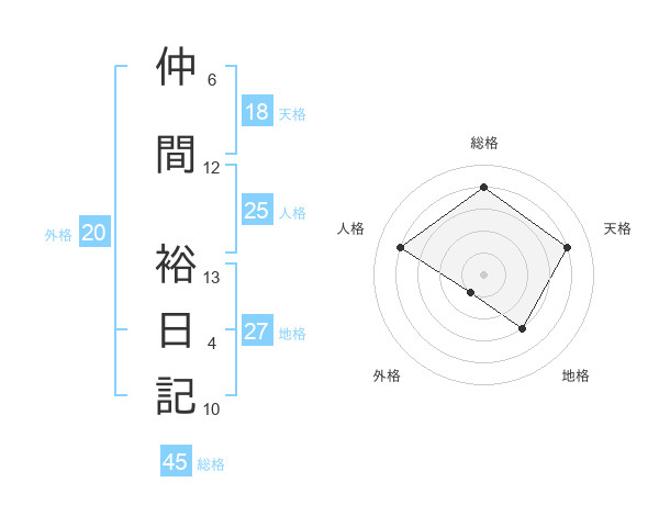 仲間 裕日記さんを姓名の画数から五運を鑑定