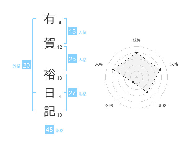 有賀 裕日記さんの総格は45画の4点!