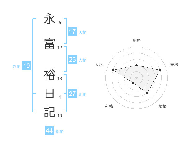 永富 裕日記さんを姓名の画数から五運を鑑定