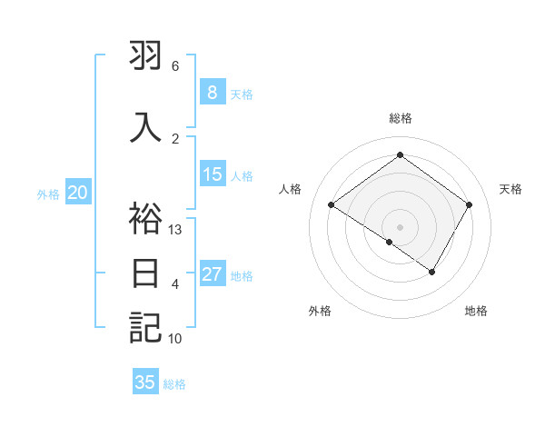 羽入 裕日記さんを姓名の画数から五運を鑑定