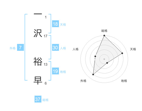 一沢 裕早さんを姓名の画数から五運を鑑定