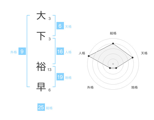 大下 裕早さんの総格は25画の4点
