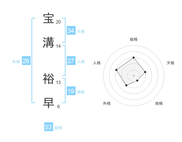 宝溝 裕早さんを姓名の画数から五運を鑑定