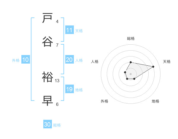戸谷 裕早さんを姓名の画数から五運を鑑定