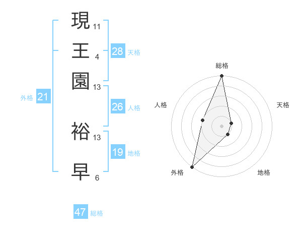 現王園 裕早さんを姓名の画数から五運を鑑定