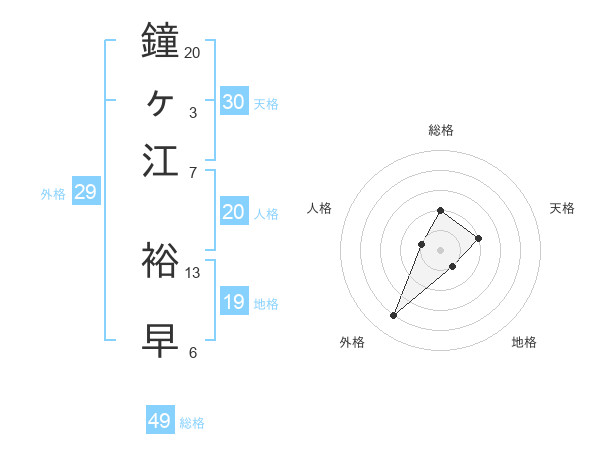 鐘ヶ江 裕早さんの総格は49画の2点