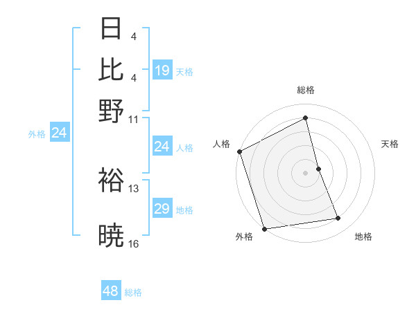 日比野 裕暁さんを姓名の画数から五運を鑑定