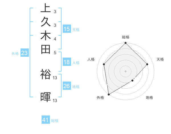 上久木田 裕暉さんを姓名の画数から五運を鑑定