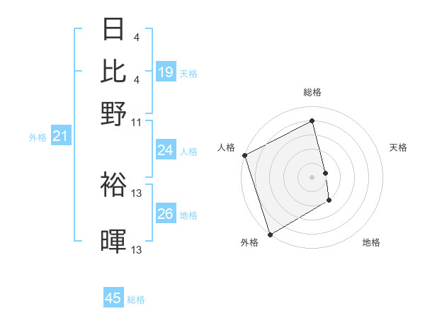 日比野 裕暉さんを姓名の画数から五運を鑑定