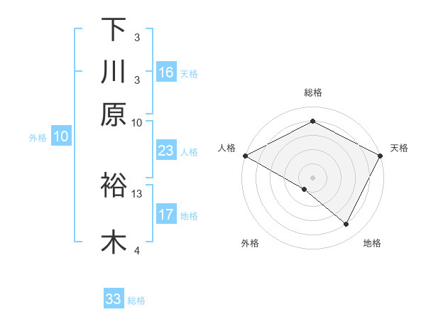 下川原 裕木さんを姓名の画数から五運を鑑定