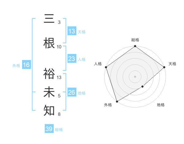 三根 裕未知さんを姓名の画数から五運を鑑定