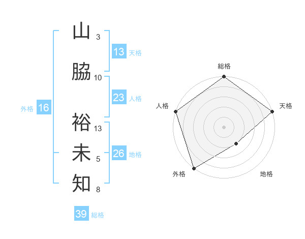 山脇 裕未知さんを姓名の画数から五運を鑑定