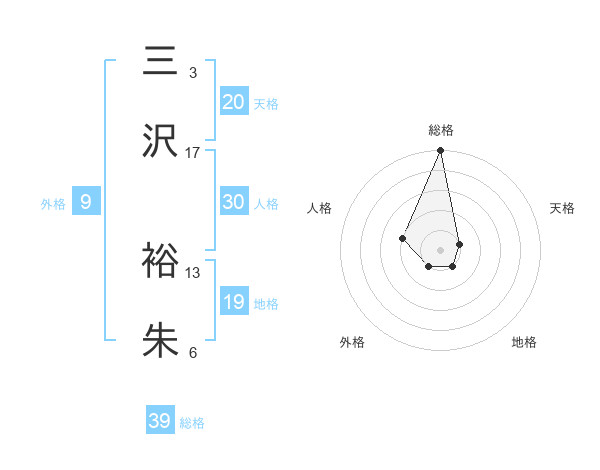 三沢 裕朱さんを姓名の画数から五運を鑑定