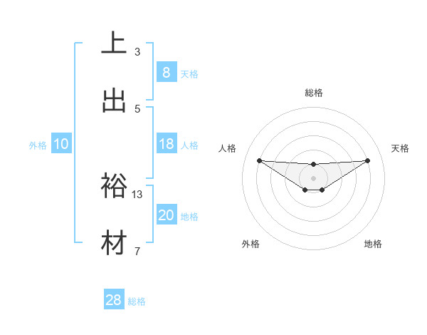 上出 裕材さんの総格は28画の1点!