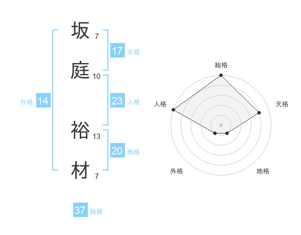 坂庭 裕材さんの総格は37画の5点!