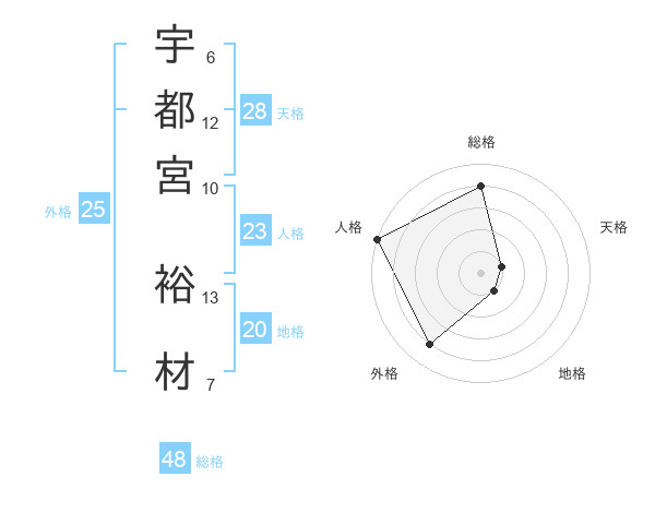 宇都宮 裕材さんの総格は48画の4点!