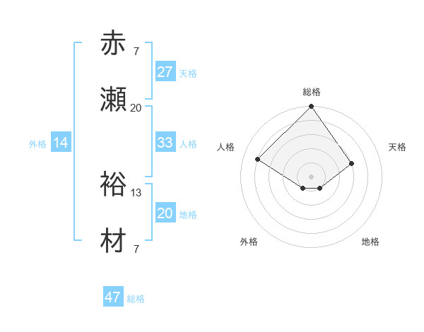 赤瀬 裕材さんを姓名の画数から五運を鑑定