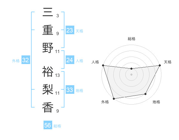 三重野 裕梨香さんの外格は32画の5点!