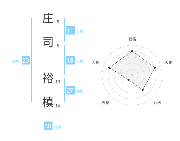 庄司 裕槙さんを姓名の画数から五運を鑑定