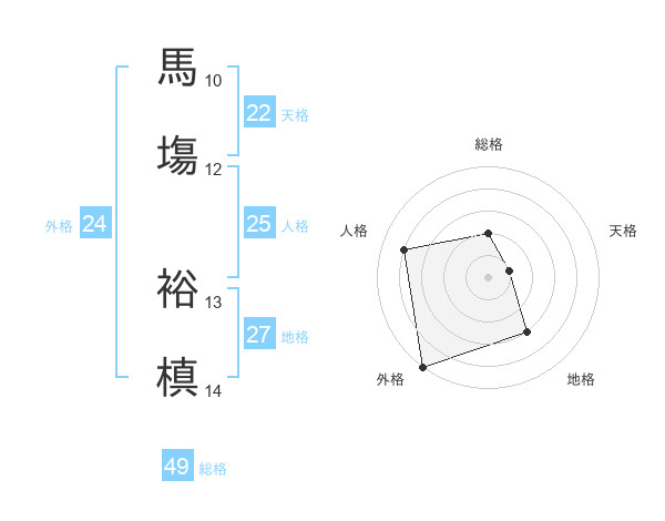 馬塲 裕槙さんを姓名の画数から五運を鑑定