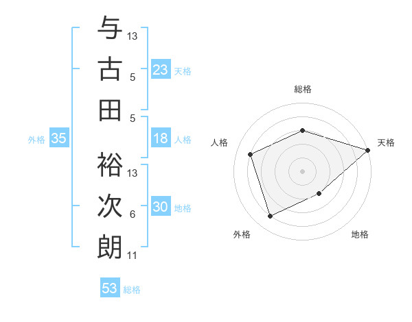 与古田 裕次朗さんを姓名の画数から五運を鑑定