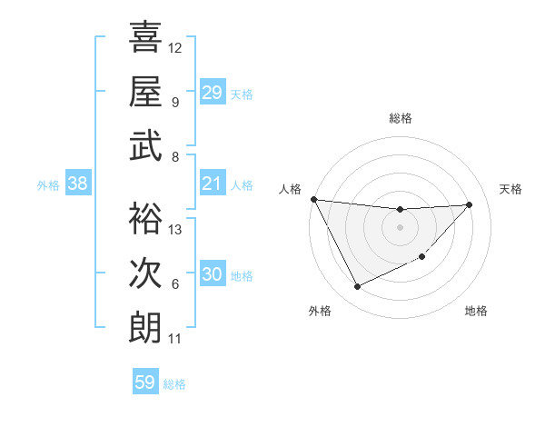 喜屋武 裕次朗さんの外格は38画の4点!