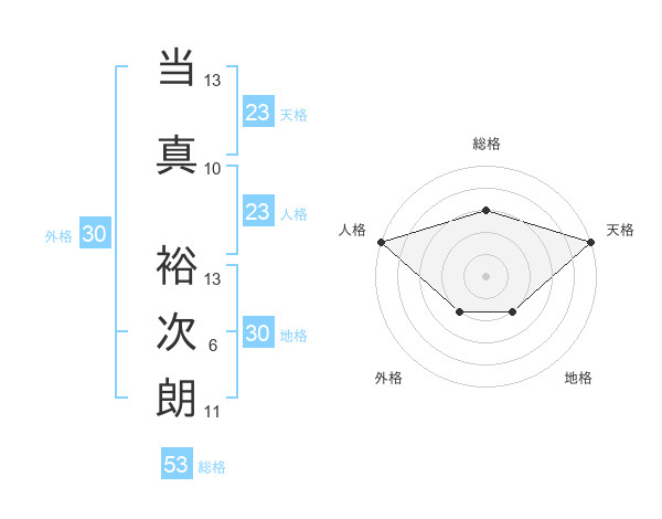 当真 裕次朗さんの総格は53画の3点!