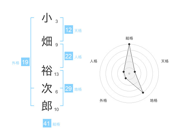 小畑 裕次郎さんを姓名の画数から五運を鑑定