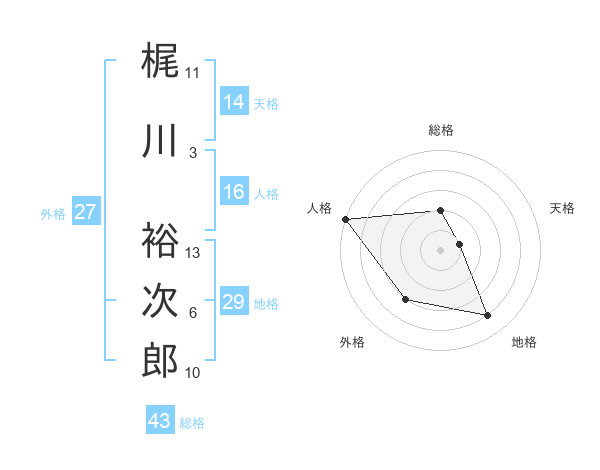 梶川 裕次郎さんを姓名の画数から五運を鑑定