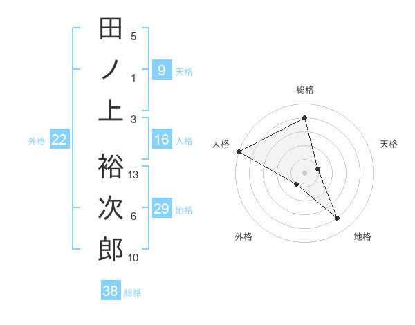 田ノ上 裕次郎さんを姓名の画数から五運を鑑定