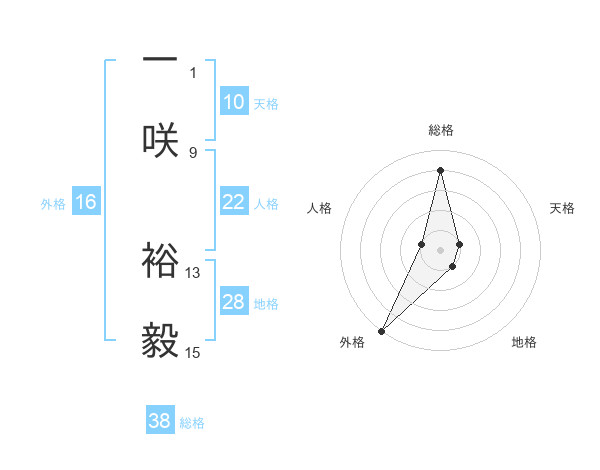 一咲 裕毅さんの外格は16画の5点!