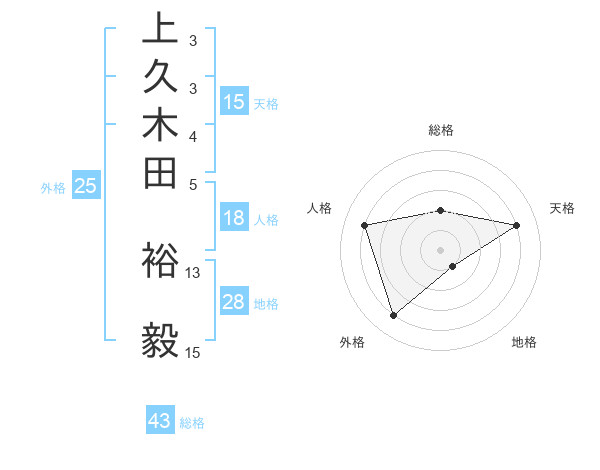 上久木田 裕毅さんを姓名の画数から五運を鑑定
