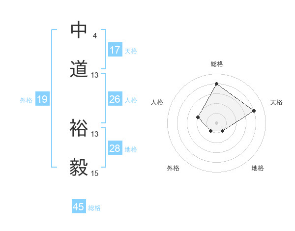 中道 裕毅さんを姓名の画数から五運を鑑定
