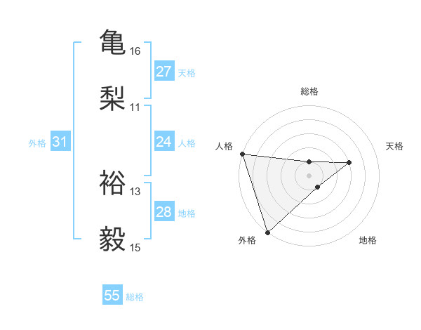 亀梨 裕毅さんの外格は31画の5点!