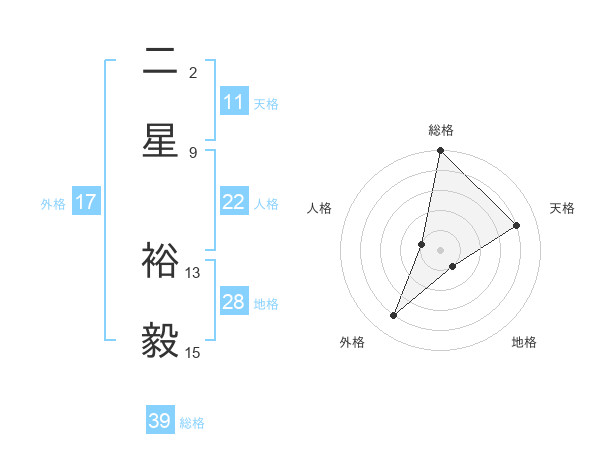 二星 裕毅さんを姓名の画数から五運を鑑定