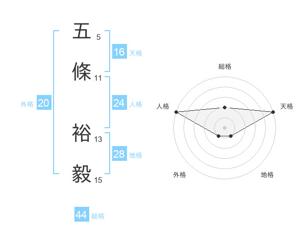 五條 裕毅さんの総格は44画の2点!