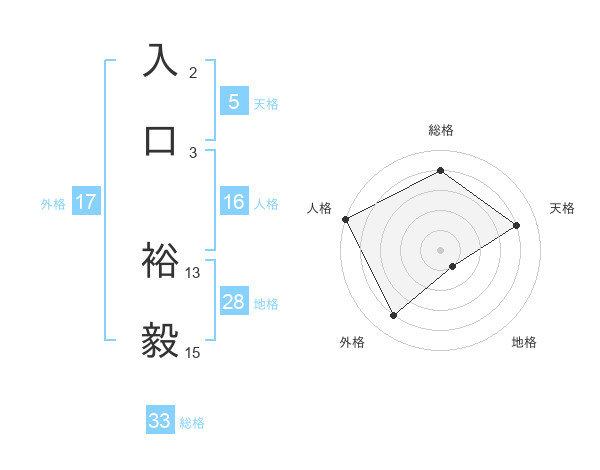 入口 裕毅さんの地格は28画の1点!