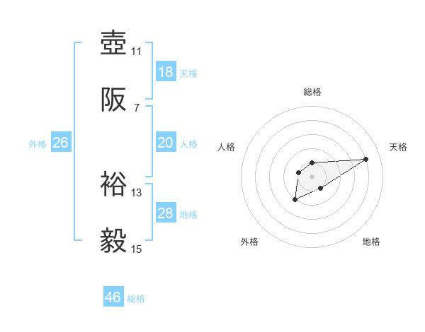壺阪 裕毅さんの天格は18画の4点!