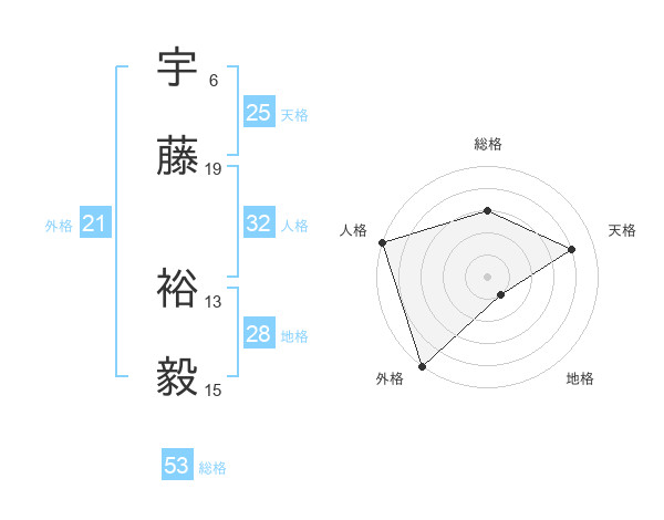 宇藤 裕毅さんの総格は53画の3点!