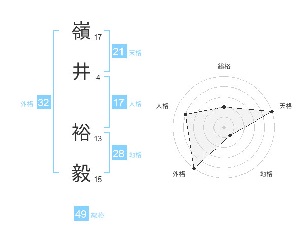 嶺井 裕毅さんの外格は32画の5点!