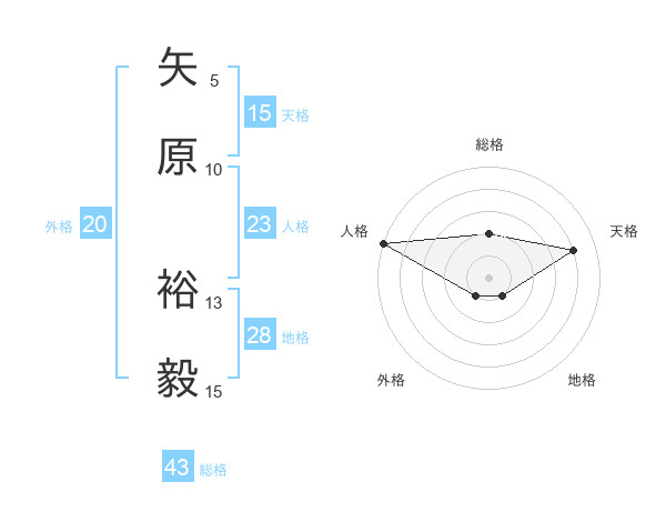 矢原 裕毅さんを姓名の画数から五運を鑑定