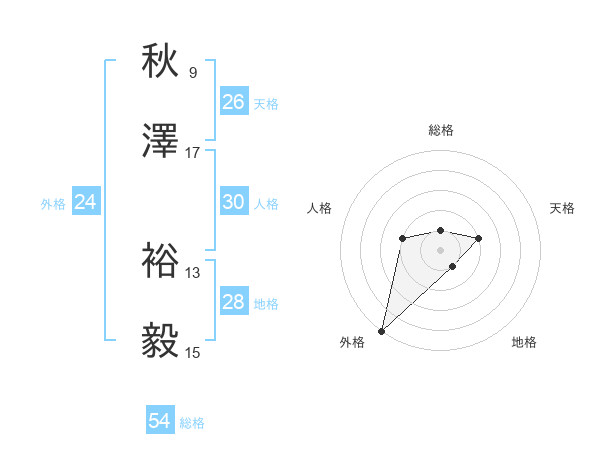 秋澤 裕毅さんを姓名の画数から五運を鑑定