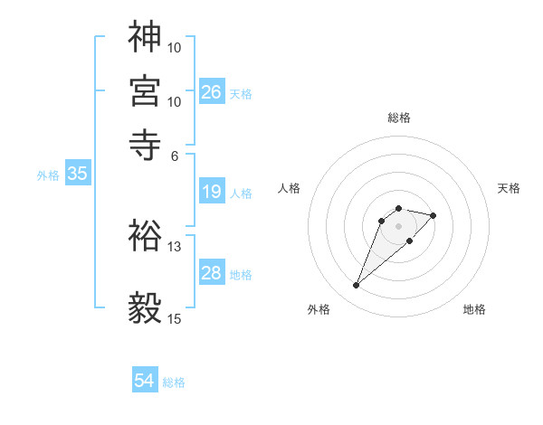 神宮寺 裕毅さんを姓名の画数から五運を鑑定
