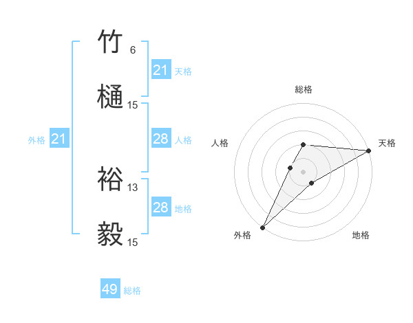 竹樋 裕毅さんの天格は21画の5点!